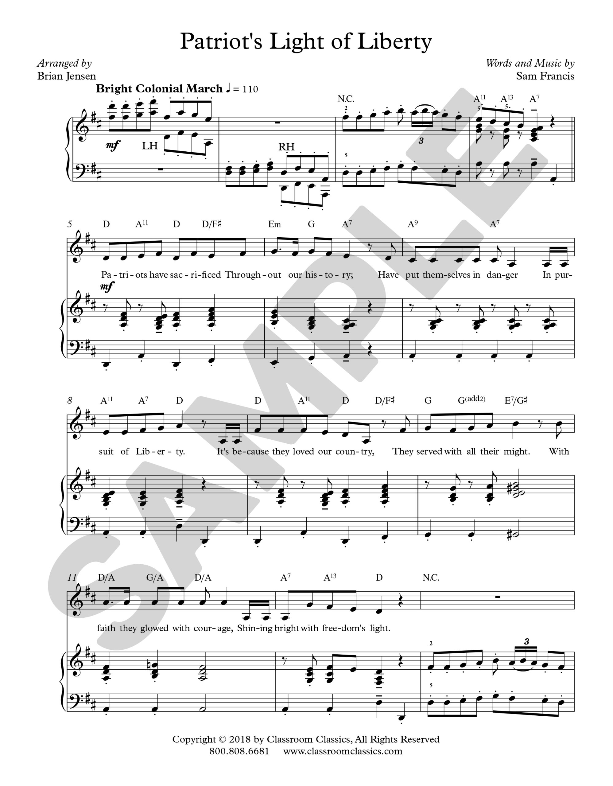 This sheet music is for the song “Patriots’ Light of Liberty”